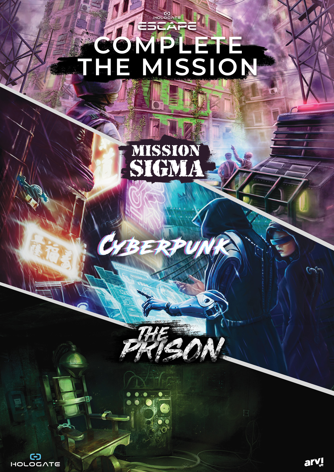 Tauche ein in eine andere Welt, setze die VR-Brille auf, nimm die Joysticks oder den Blaster und erlebe ein Spielvergnügen in einer anderen Dimension. In unserer Hologate Arena kannst Du alleine oder mit bis zu 4 Spielern gleichzeitig spielen oder die Kurzspiele im Wechsel mit noch mehr Personen. Die Spiele haben eine Spieldauer von 3 bis zu 60 Minuten, die Escape Rooms von 60 Minuten.
